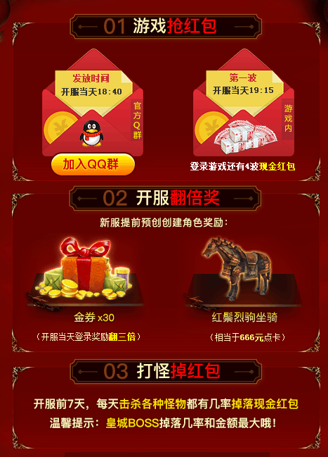 第二波红包:开服当日19:15也就是开服后15分钟哦!