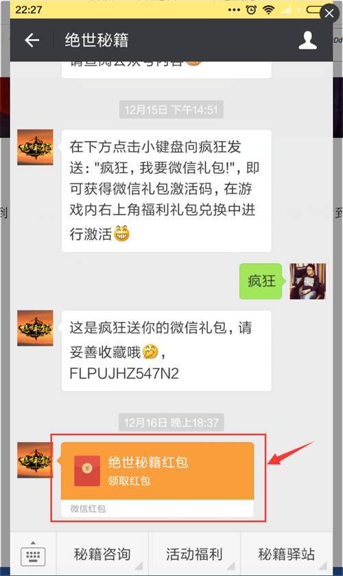 为了回馈小伙伴们的支持与厚爱,由《绝世秘籍》独家首创,在游戏植入的两个RMB红包现抢现拿活动,下面疯狂将为您定时RMB红包活动的神秘面纱(图文流程):