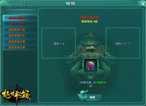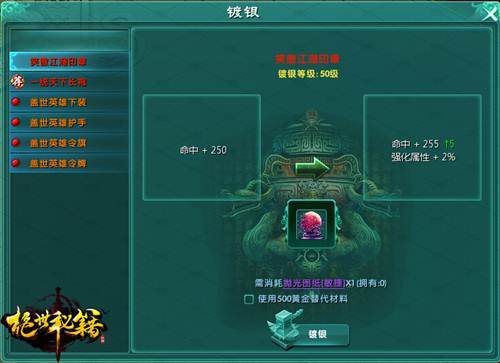 3.装备镀银需要消耗绑银,镀银等级达到一定程度时,需要消耗抛光图纸,镀银100%成功。