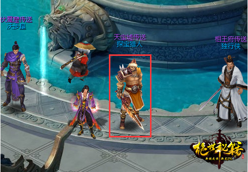 1.少侠们必须结伴前往主城水池边,与探宝猎人(47,49)交谈后,方可开启副本,进入天宝墟。