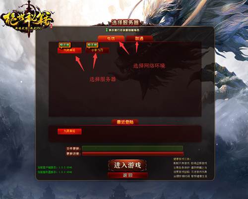 1.玩家进入游戏,选择自己的网络环境,然后选择服务器