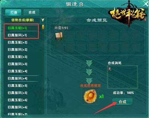 2.当玩家达到50级时,系统通过任务配送初始信物材料-江湖传闻,玩家在锻造大师处自行换成对应职业的信物。