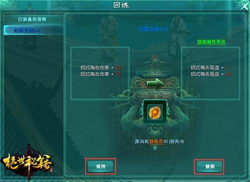 2.玩家通过主城铁匠,可对已装备的信物进行回炼,替换当前所有的加成属性。玩家可以自行选择维持或替换,以获得最适合自身的加成属性。