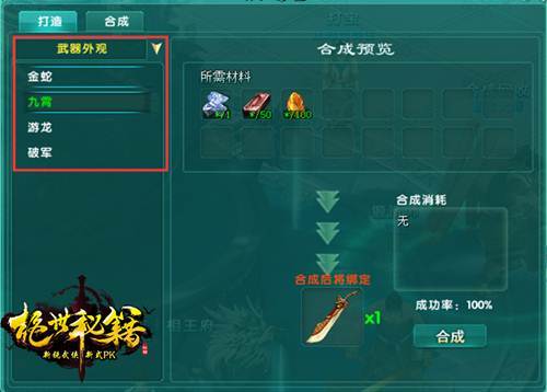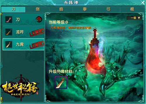 目前,刀,剑,扇,拳四套秘籍的武器时装已经面世,解锁激活后还可增加相应秘籍攻击力100点。