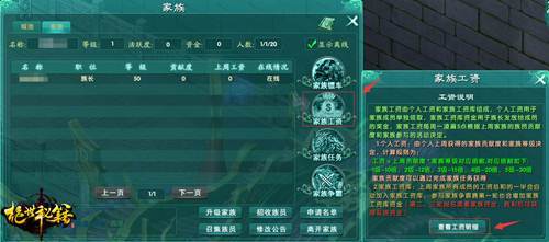 加入家族后,族员每周都可以领取家族工资。族员所得工资=个人工资+族长奖金发放。工资明细可以查看右下角社会菜单,点击家族界面,再右侧选择家族工资,可以看家族工资说明。