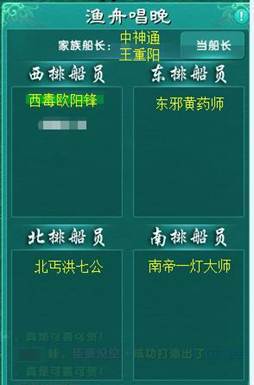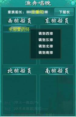 夕阳映照,万顷碧波。渔舟唱晚是新版本推出的一个家族与家族之间竞赛,家族成员互动协作的以家族为单位的新活动系统。活动追忆的是晚霞辉映下渔人载歌而 归的原生态质朴的画面情景。使得渔舟唱晚成为江湖纷争,武力对抗紧张氛围下各自止戈休战,相逢一笑泯恩仇的另一种竞赛方式。
