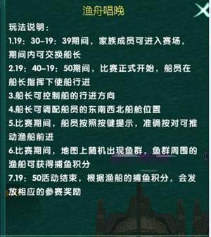 族员可以在游戏右下角玩法——活动渔舟唱晚(每日)查看到活动的详情介绍。
