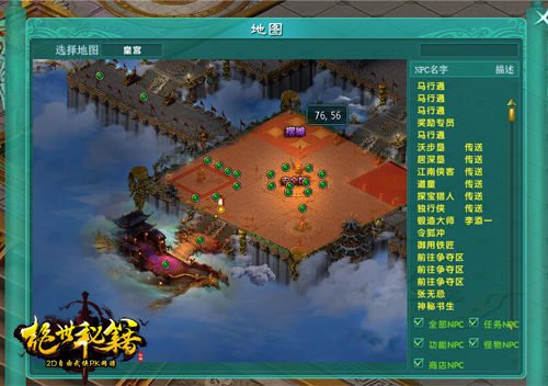 1、当侠客们等级达到30级时,侠客们可通过主城的马行通传送进入皇宫,在皇宫进行摆摊;