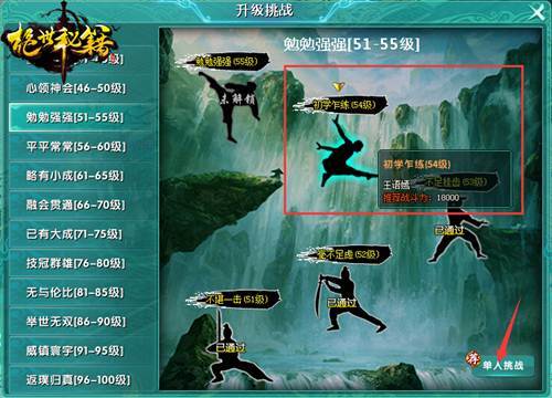 《绝世秘籍》抛弃了单调枯燥的刷怪攒经验模式,独创升级塔模式,杀一怪即可升一级。在40级之前,玩家只需跟随主线任务,击杀怪物;在40级起,通过挑战升级塔升级。