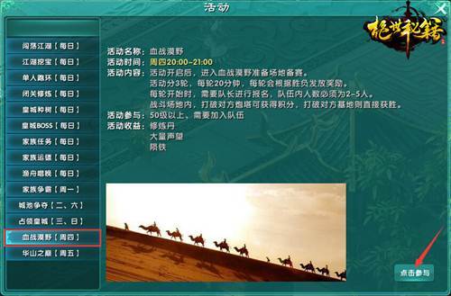 2.选择血战漠野,然后点击参与。